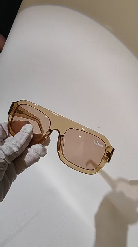 Lens are bronze and made from 100% Polycarbonate and feature UV Protection.